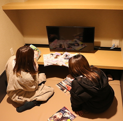 ★2名用の鍵付き完全個室フラットシート(\525/1h)★広々してるから2人いても窮屈じゃない!クッションやブランケットで快適度UP♪
