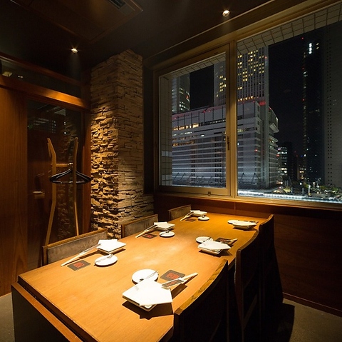 夜景の見えるテーブル個室。ツインタワー、ミッドランドスクエアなど高層ビルを望む特別な空間。大き目の窓が圧巻のロケーションです☆