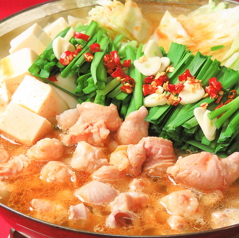 国産のプルンプルンの小腸は疲れがちな内臓機能の回復にも効果抜群!季節関係なくおすすめの絶品!旨辛もつ鍋、あっさりしょう油をお楽しみください。