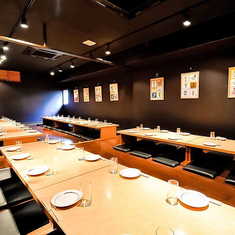 ◇◆2階 座敷完全個室1組限定!見通しよく皆様で盛り上がれる空間◆◇ 歓送迎会などの各種宴会、パーティーなど様々なシーンで便利にご利用いただける宴会個室をご用意しました。最大60名様までご利用可能です。完全個室なので、周りを気にせずに存分に盛り上がれます。