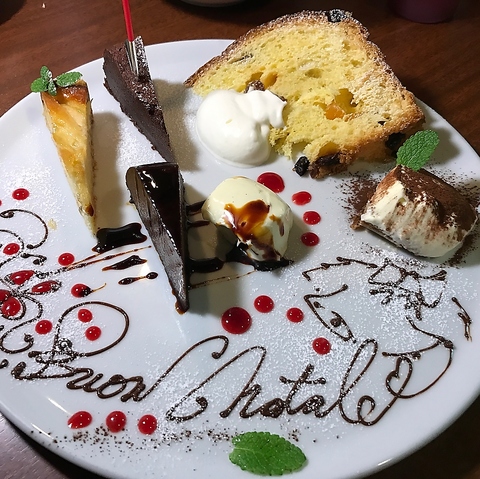 主役も喜ぶこと間違いなしのドルチェ盛り合わせをご用意♪大切な方と素敵なお時間をお過ごし下さい。