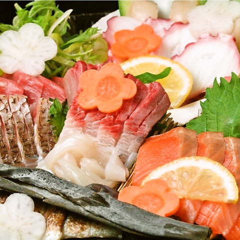 新鮮な本マグロ、中トロ、赤身に加え、脂の乗ったぶりや甘みたっぷりの帆立が豪華に盛り付けられた刺し盛は、まさに贅沢の極み!これだけの豊富な種類と質の高い魚介を一度に楽しめるなんて、まさにお得感満載!お刺身好きにはたまらないボリューム感で、心ゆくまで味わえます。この機会にぜひご賞味ください。