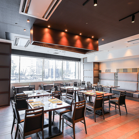 川側が全面窓ガラスの開けた店内。陽の温かい光が差し込み、夜のムーディーな雰囲気とは違う明るくゆったりとした時間が過ごせます。お昼のデートや女子会はもちろん、お子様連れのママ会やちょっとしたランチにもご利用頂けます。おいしいお肉とお昼からワインで、ご友人と優雅なランチタイムはいかが?
