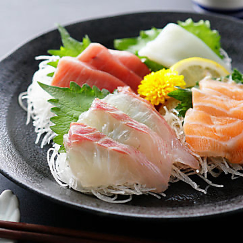 漁港から直送のお刺身は鮮度抜群!まずは刺し盛りからどうぞ!