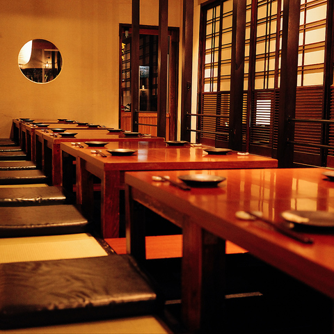 まったりできる堀ごたつの座敷。落ち着いた照明がちょっと大人の雰囲気を演出…。各種宴会にピッタリ!