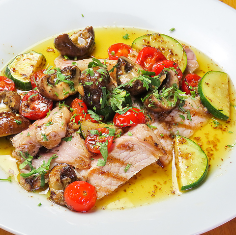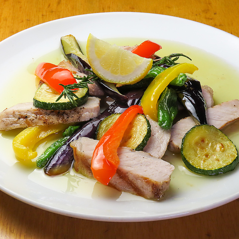 かみこみ豚と色々野菜のシンプルグリル 香草オイルとレモン 250g