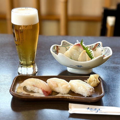 平日15時~17時限定!1000円(税抜)でドリンク3杯、小鉢1品、旬の刺身or旬の握り3貫のお得なセット♪