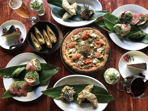 料理9品、全てアボカド料理と飲み放題2時間がついた「アボカド三昧コース」