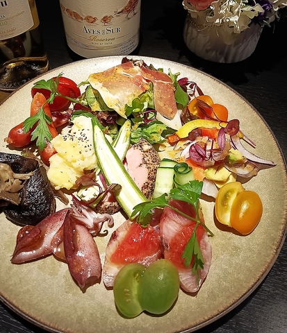 自家製ソーセージ、ハモンセラーノ、鮮魚のカルパッチョ、鴨スモーク、スモークサーモンなどビールやワインにぴったりの一皿です!