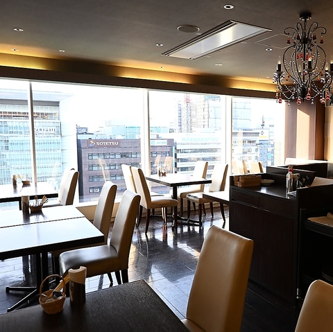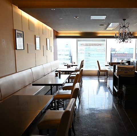 | テーブル | 7名様×4 | 昼は大きくて開放的な窓から優しい光が差し込み、眼下に広がる町の喧騒をちょっと忘れてゆったりとした時間を過ごしませんか。 |