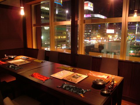 【雰囲気抜群♪まさに異空間!】夜景の見えるテーブル席。5名席に仕切ることも出来ます。各種宴会にいかがですか?