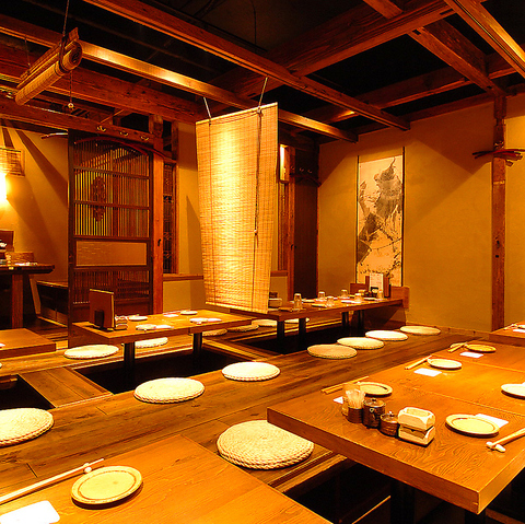 テーブル席に生まれ変わりました!自慢のおせきは最大36名まで!古民家のような温もりのある落ち着いた雰囲気の店内、ゆっくり美味しいお料理とお酒をお楽しみいただける空間づくりにこだわりました。少人数でもご利用いtだけます。