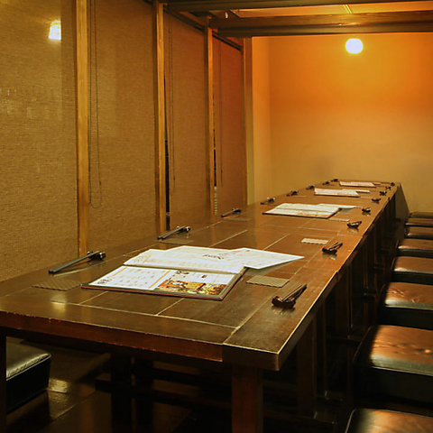 【個室利用は2名様~最大20名様】一番人気のお座敷半個室はご予約必須のお席。間接照明がプライベート感たっぷりで雰囲気◎簾で仕切ってデートや接待にもおすすめです。