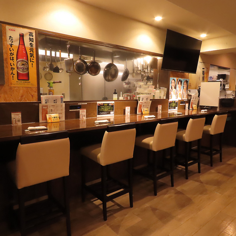 調理風景が見られるカウンター席