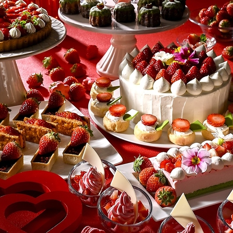 春の訪れを祝う、心ときめくスイーツブッフェ。旬を迎えた真っ赤な ブランド苺「あまおう」と、優雅に香る「桜」をふんだんに使用した、期間限定のデザートブッフェを開催いたします。