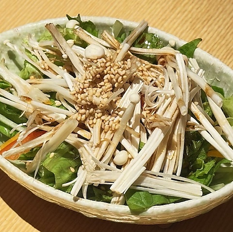 長野県産でサラダ用のえのきを使った新鮮なサラダえのきのシャキシャキした食感をお楽しみください
