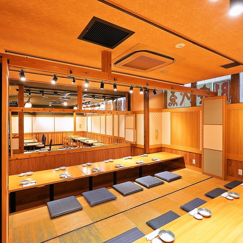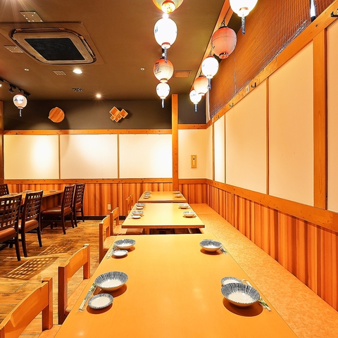 和を基調にした昔ながらの『THE☆居酒屋』な店内なので、肩の力を抜いてゆったりおくつろぎいただけます♪少人数~大人数まで幅広く対応可能★女性のお客様のみのグループもいらっしゃる、立ち寄りやすさと居心地の良さが自慢です◎開放的な店内でワイワイお楽しみください☆