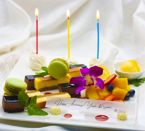 メッセージ入りデザートプレートはお好きなメッセージお入れします。誕生日や記念日のお祝いに、ぜひご利用ください。※前日までに要予約 ※写真はイメージです。