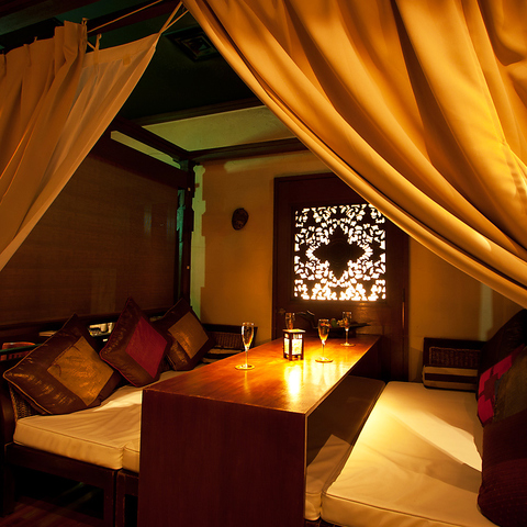 二人の距離を縮める幻想的なカップルシート。4~6名用のソファー席などリゾートのような落ち着いた空間で女子会やコンパにもおススメ。