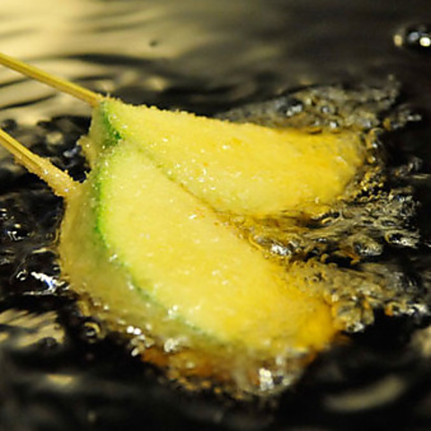 えんの串揚げは特製の細かい「ころも」だからお口の中でゴソゴソしたりせずにソースが絡みやすい!本物のサクサクに出会えるはず!!