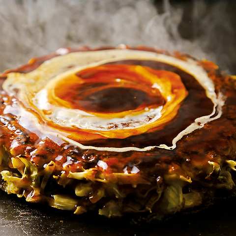 出汁香る、京風お好み焼。丹精込めて仕上げた一枚は、出汁とソースの香りがふわりと広がる上品な味わいです。