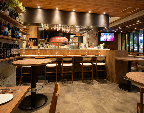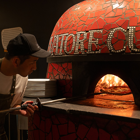 イタリアから専門の窯職人(ミケーレ)が来日して造った自慢の薪窯!約400℃で焼き上げるピッツァは薪の香りともっちもち生地が絶品です!