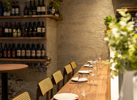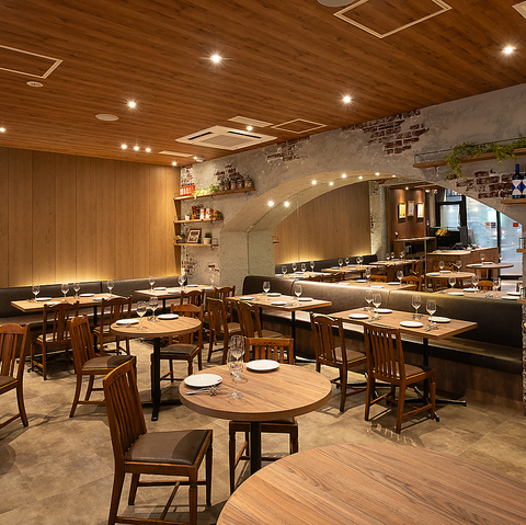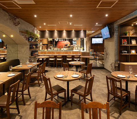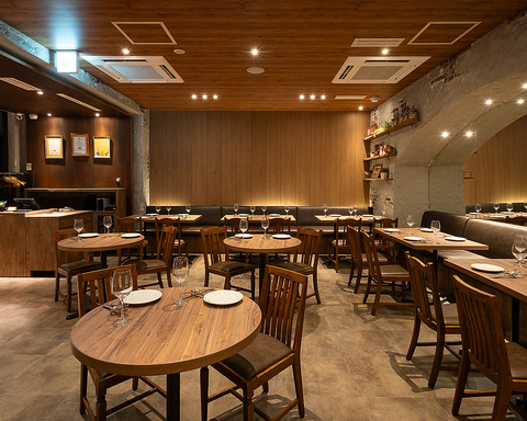 木や石を基調としたナチュラルな店内はほっと気持ちも和らぐ空間!壁に展示している各地のワインも必見です!ぜひお気軽にお越しください♪