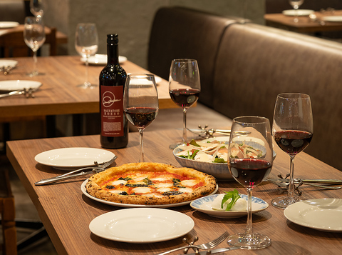 サルヴァトーレのピッツァは一枚一枚丁寧に、職人が気持ちを込めて焼き上げています!この窯で焼き上げるナポリピッツァは、薄生地なのにもちもちで、薪のかおりが香ばしい逸品。約450度の炎で一気に焼き上げられた生地は焦げ目が付いて香ばしく、絶妙な美味しさ。薪窯でしか味わえない本物のナポリピッツァをお届けします。