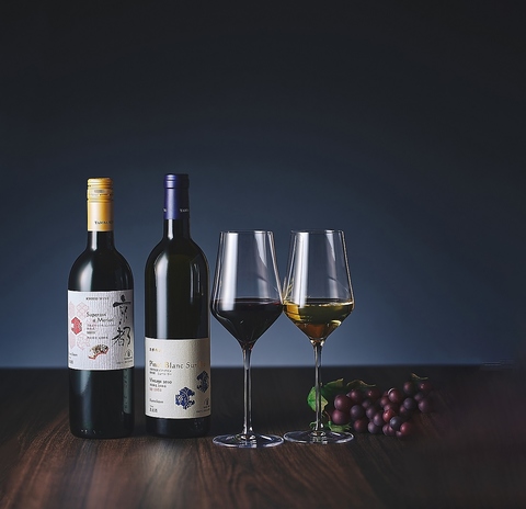 1979年から京都初のワイナリーとして京都の食文化に根ざしたワインを作り続ける丹波ワイン株式会社から厳選したワインを用意させていただきました。※ボトル販売もございます。
