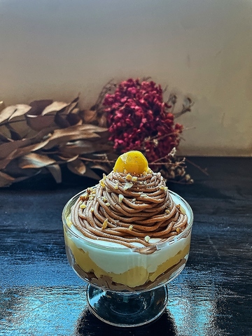 濃厚な栗ペーストにお酒が入った大人なパフェです。毎年人気のモンブランパフェ。是非珈琲と一緒にお召し上がりください。