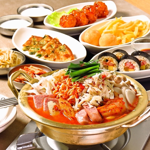 人気の部隊チゲを囲みながら、お手軽に韓国屋台料理を楽しめるプラン!