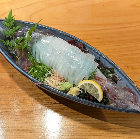 県外の方にも人気のカキは通年お楽しみいただけます。その他、穴子、小イワシを刺身でご提供するのは広島ならでは!入り口すぐには魚屋のように生簀があり、瀬戸内の活魚はここで管理。さばきたての活魚をお造りでもぜひご堪能下さい。