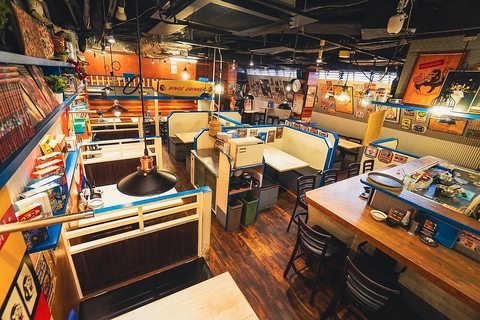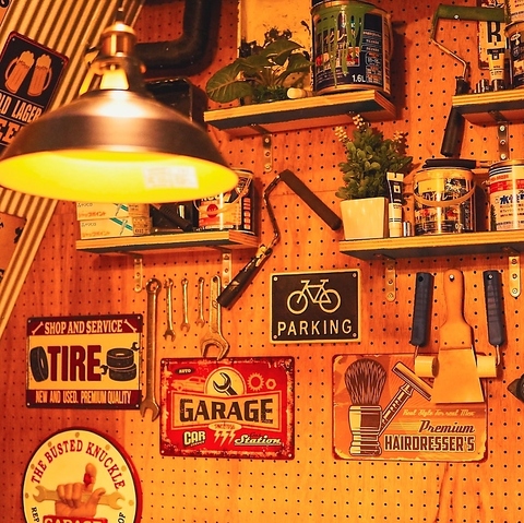 カルフォルニアガレージで遊び心のある店内!"大人の遊び場をイメージして作ったこだわりの店内!男の人なら誰しも憧れるカルフォルニアガレージを鬼ゴリで再現!ガブ飲み!"