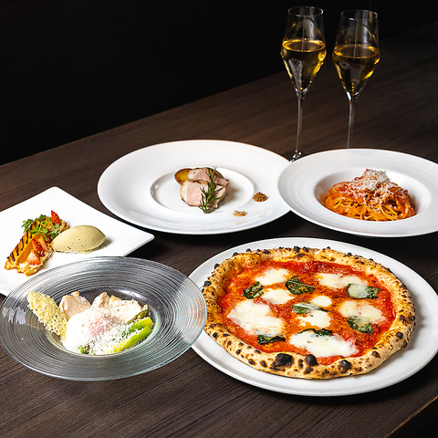 お得な飲み放題付のコースは窯焼きピッツァや自慢のお料理が楽しめます。(別途チャージ500円税込)