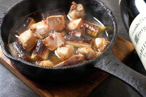 濃厚なあんこうと香り高い白ネギを、あん肝醤油の旨みを移したオイルで煮込む贅沢な冬アヒージョ。