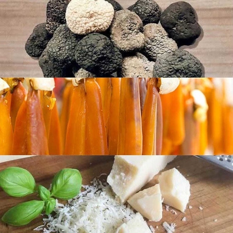 トリュフ、カラスミ、削りたてパルミジャーノの三大珍味を使ったスペシャルピザに無料グレードアップ!!