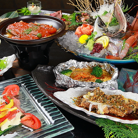 飲み放題付きコースは3000円~。旬の魚はもちろん、料理長自慢の逸品も盛り沢山!!