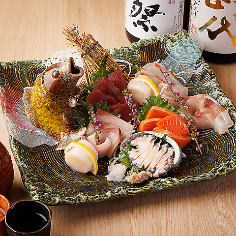 寿司の階段盛りをはじめ、思わず写真を撮りたくなる華やかな盛り付けの海鮮料理を多数ご用意。新鮮なマグロや旬魚を使った刺身、寿司、創作料理は、味はもちろん見た目にもこだわり、特別なひとときを演出します。料理に寄り添う日本酒や焼酎、ワインも豊富に揃えてます!
