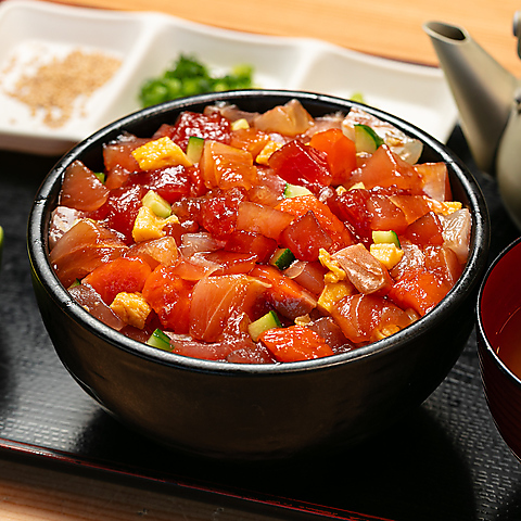 新登場!まぐろを贅沢に使った「まぐろぶっかけ海鮮丼」。最速提供なのでサラリーマンの方必見です!