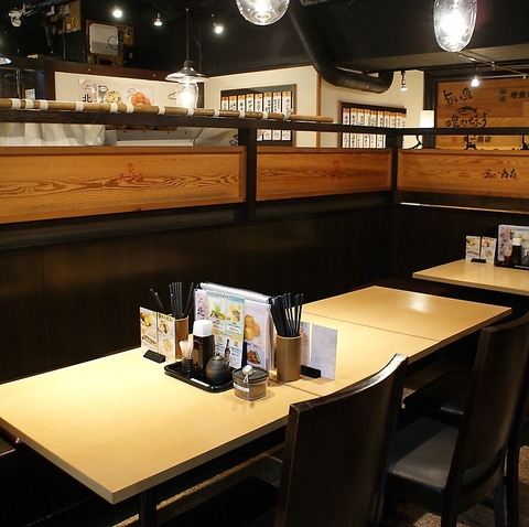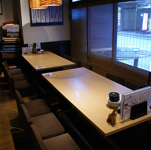 | テーブル | 6名様×2 | 背もたれが高く座りやすいお席です。対面式ボックス席は話しやすく、会社の飲み会、友人や家族との食事など、幅広くお使いいただけます。 |