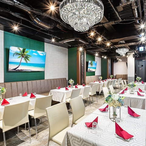 【1フロアまるごと貸切“ガムランボール”】20~50名様までご利用いただける貸切スペース。着席・半立食、大皿だし・ビュッフェスタイル等、幅広く対応可能です。