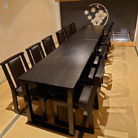 【冬の間】特別完全個室。最大12名様迄。会社のご接待、ご家族や大事なご友人との会食の場に最適なお部屋です。テーブルと椅子を完備。