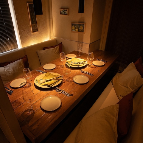 半個室は、4名向け、6名向け。カーテン効果によりプライベート感をより一層増してくれます。誰にも邪魔されない、プライベートな時間をお過ごしください。