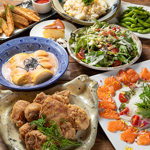 もなか堂の飲み放題付きコースは、野菜、魚、肉のバランスが取れたスタンダードな内容です。フードはたっぷりとご用意しており、ドリンクはビール、日本酒、焼酎、梅酒、生搾り酎ハイ、カクテルなど約60種類からお選びいただけます。メニューの具体的な内容についても、ご要望に応じてできる限り対応いたします。