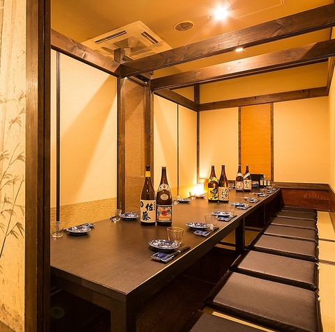 最大10席の掘りごたつ個室です。落ち着いた雰囲気の為、接待にも最適です。周りを気にせずごゆっくりお寛ぎ頂けます。同窓会や会社の部署飲み会、学校PTAの打ち上げなどにご利用頂けます。大人数でのご宴会には貸切で誰にも邪魔されず、心ゆくまで飲み会をお楽しみ頂けます。