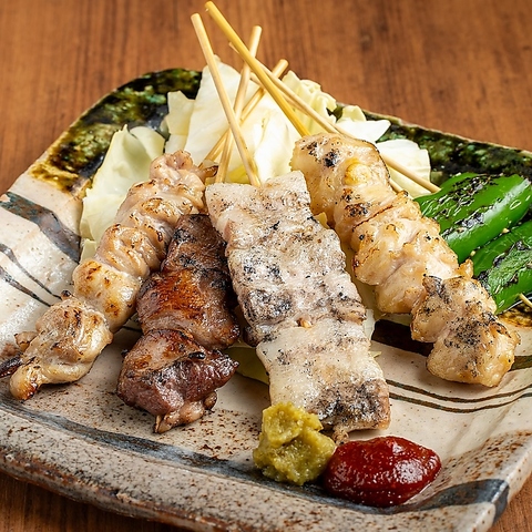 山尾名物の炉端焼きは野菜・肉・魚介の旨みを最大限に引き出します。1本198円より取り揃える焼き鳥も魅力