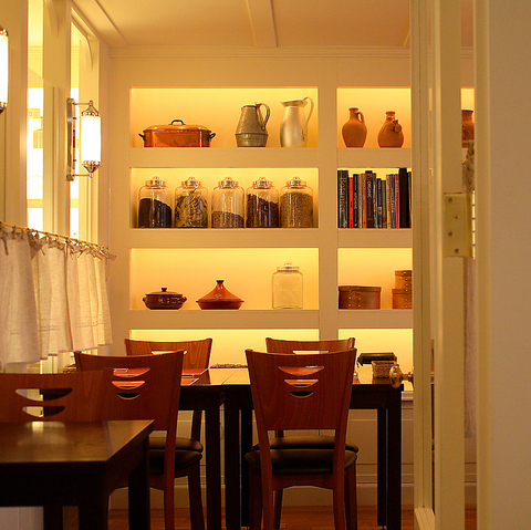 いろいろな小物が飾ってある棚が印象的な、温室をイメージさせる個室。少人数のお集まりにおすすめプランご用意しております。