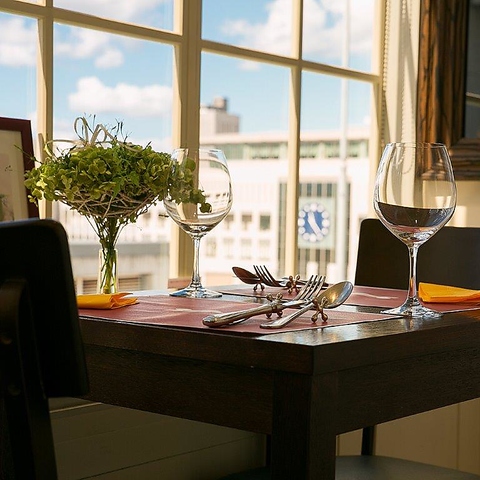 札幌駅の街並み、夜景が見下ろせる窓際席♪カップルや女性に人気のお席です。少人数のお集まりに。外の騒がしさを忘れさせてくれる落ち着いた雰囲気の店内でゆっくりディナーやランチを…。
