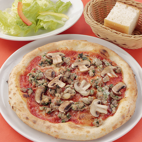 もち豚ひき肉をローズマリーで香りづけし マッシュルームとともに。