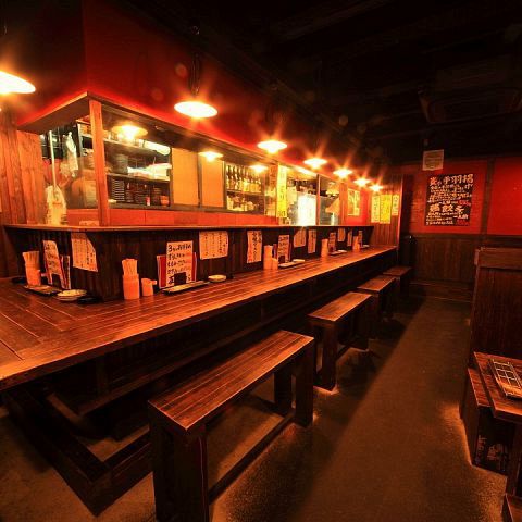 北新地周辺での会社帰りのサク飲みにもぴったりです。九州郷土料理の博多串焼きと中津唐揚げ、ピリッと甘辛い秘伝のタレが決め手の看板メニュー「炎の手羽揚げ」などの自慢料理を始め、居酒屋ならではの一品料理も豊富にご提供しております!また、サク飲みやお一人様でのご利用にぴったりのカウンター席も設けております♪